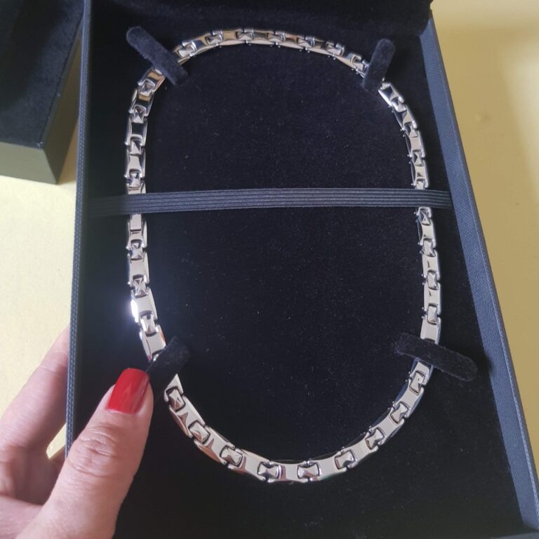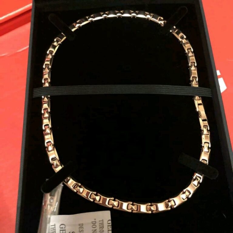 Với thiết kế chủ đạo là chất liệu hợp kim Vonfram không gỉ, đính trên đó là đá Germanium đá từ tính được chế tác tính xảo. Chiếc vòng giống như một món trang sức đắt giá mà người đeo có thể mang theo bên mình ngay cả khi đi chơi, hay đi dự tiệc…